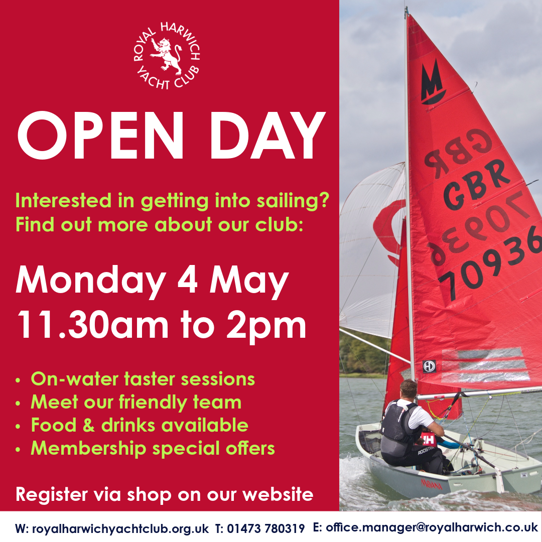 Monday 4 May 11.30am to 2pm at Royal Harwich Yacht Club, Woolverstone, Suffolk IP9 1AT